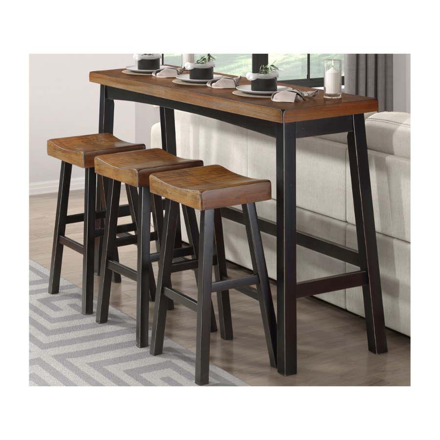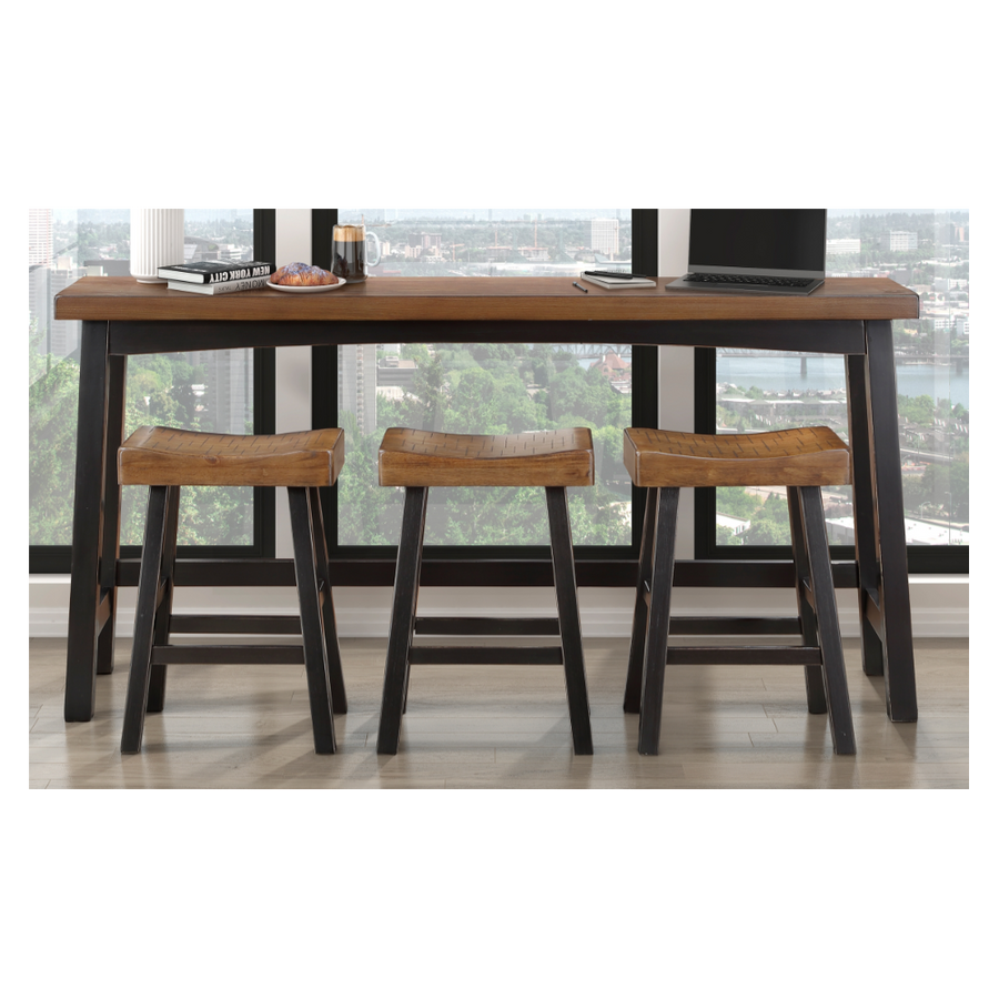 Whether pairing with your kitchen island or existing dining set, the Caspian Collection’s versatile style will provide coordination complement to your casual dining space. The transitional design of the 24-inch counter height stool pairs with the rusticated accent, subtle profile, and a neutral finish of two-tone black and brown makes the Caspian Collection a perfect selection for your home.