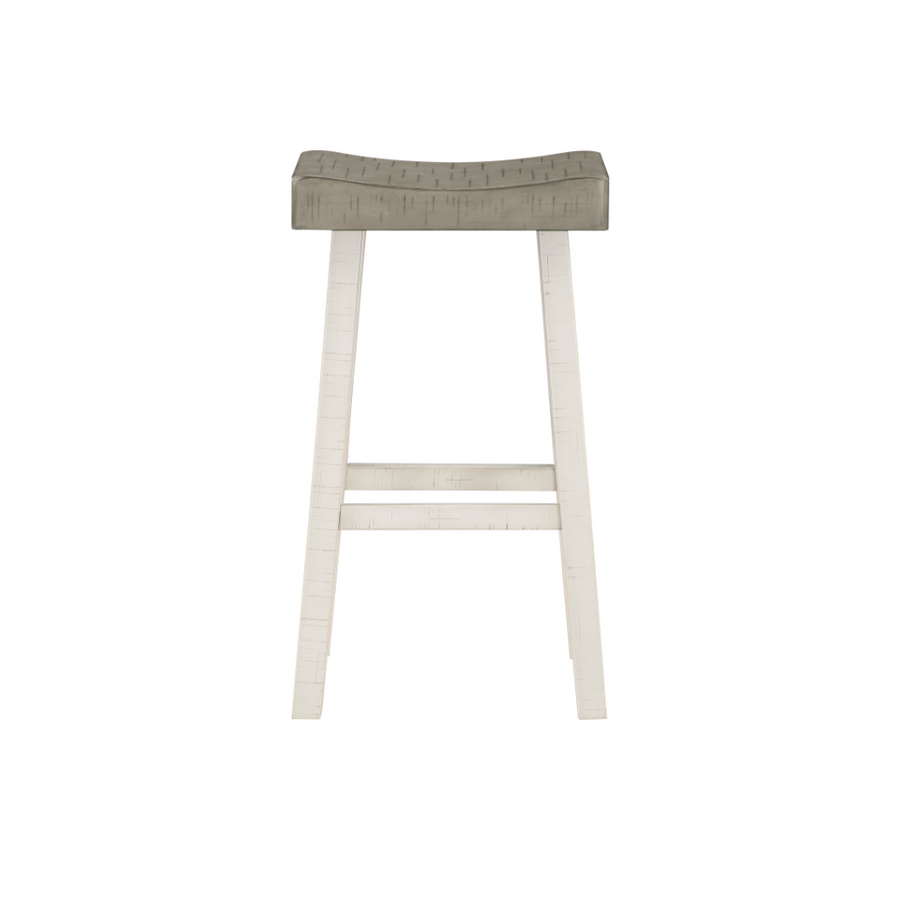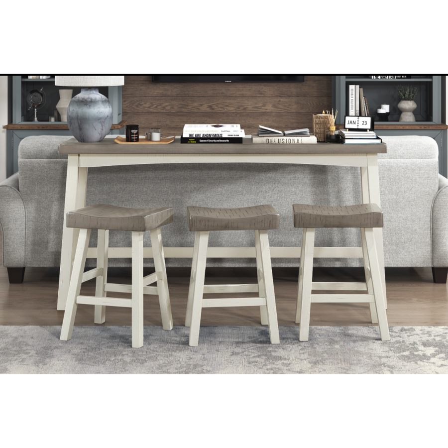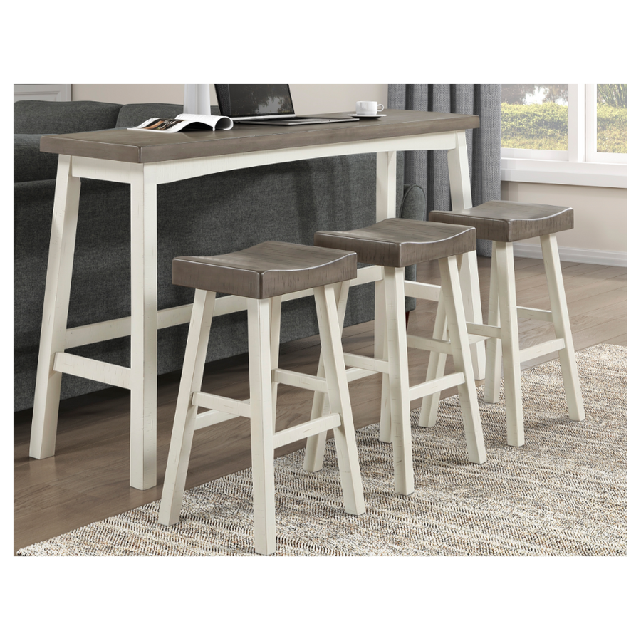 Stylistically versatile for placement in your home’s casual dining space, the transitional design of the included three 29-inch contour-seat barstools and 42-inch bar-height table is complemented with rusticated accent, subtle profile, and a neutral finish - two-tone white and coffee - to make the Caspian Collection a perfect choice for your dining needs.
