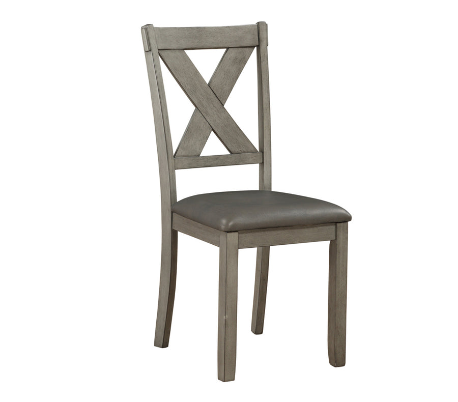 Designed in the transitional style for your casual dining space, the Holders Collection will be a welcome space for your friends and family to gather during meals and social activities. The convenient 6-piece packaging of the collection includes a table, four chairs and a bench. X-back, wood frame chairs perfectly complement the understated design of the table. Light, neutral tone seats create complementing contrast to the gray finish of the collection.