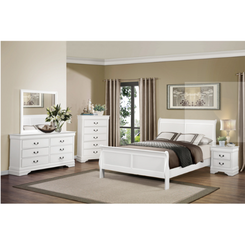 Traditional in design and modest in scale, the elegant Mayville Collection takes its design inspiration from the classic Louis Philippe styling. The white finish lends timeless appeal to the traditional queen sleigh bed.