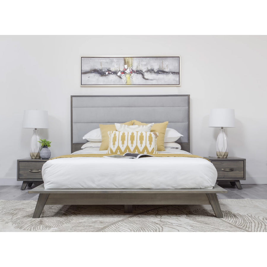 Metro Queen Size Bed with 3 Upholstered Horizontal Panels HB/FB/R/SLT.