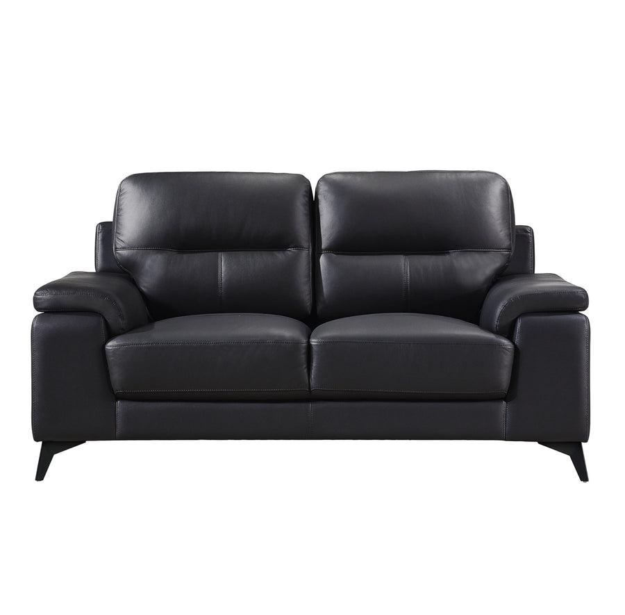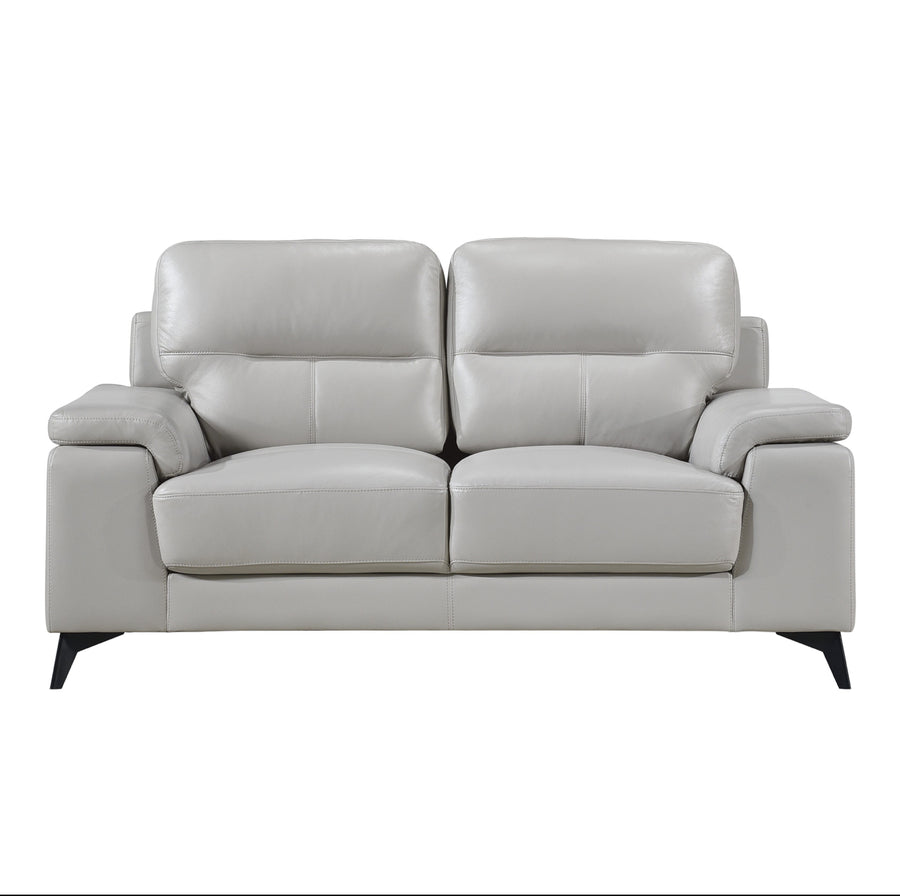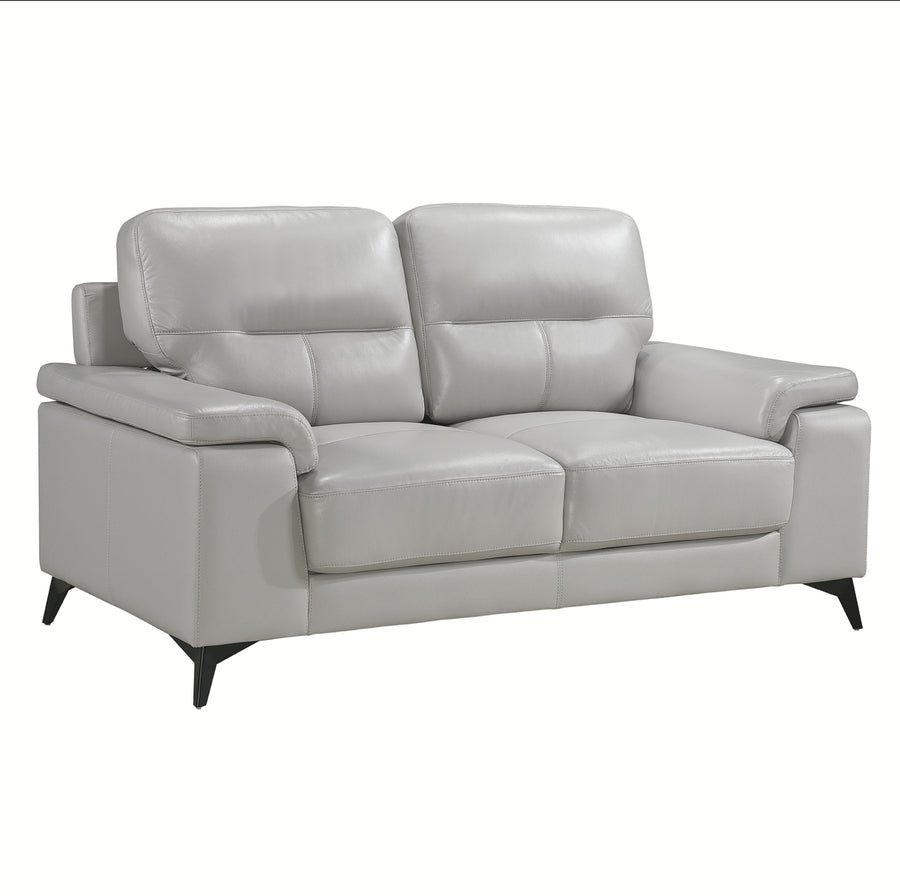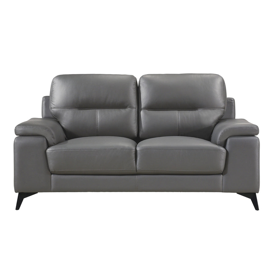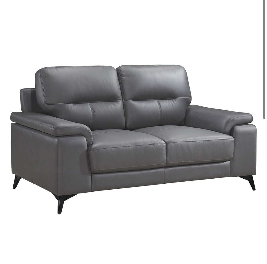 Designed for the modern home, the Mischa 3-piece Upholstery Set blends the luxurious feel of genuine leather with the comfort of sumptuous padded seating. Rich black top-grain leather covers the seat fronts while high quality faux leather-match protects the sides and back, reinforcing the overall luxe look and feel of this sleek collection. Contoured pillow-top arms, generous headrests, and high density foam-padded seat construction encourage deep relaxation, while tailored stitch detailing, exposed angled metal legs, and a contemporary profile enhance the Mischa's sense of upscale style in your living area. Available in Silver and Dark Grey.