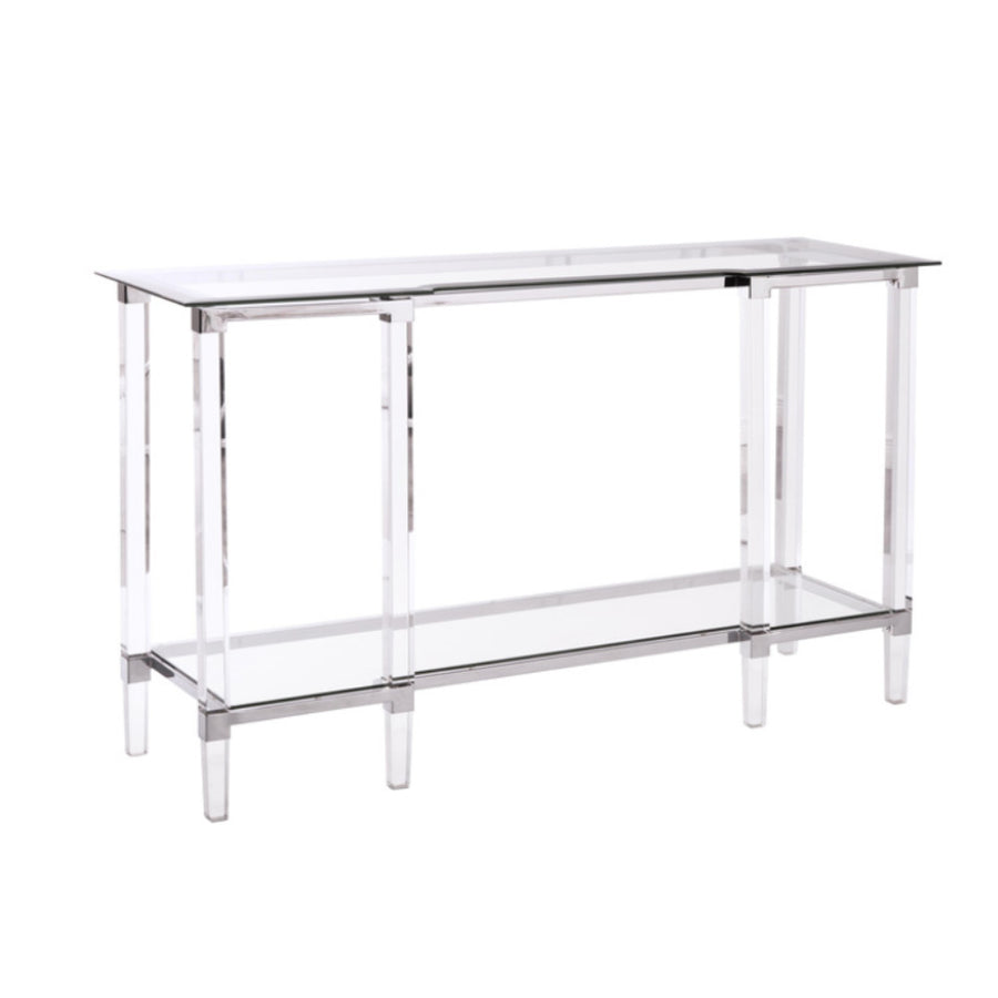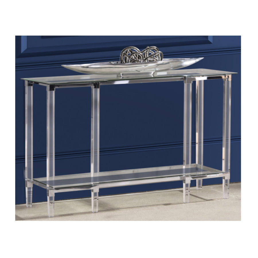 The whimsical, translucent Lyrica occasional tables will blend seamlessly into any décor. Sophisticated and stylish, the beveled glass top floats atop artistic metal bars punctuating transparent acrylic legs for a truly whimsical feel. Mix 'n match round and square tables to give you the look and fit that's perfect for your living space.