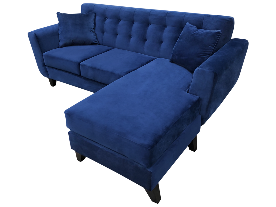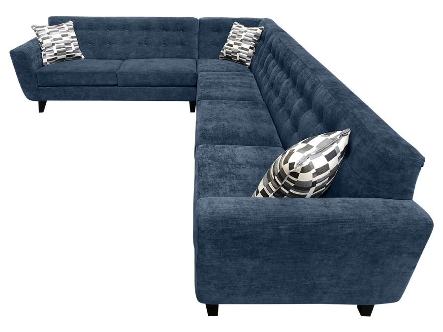 Displayed in Keywest Navy with Toss Pillows in Stagger Cloud