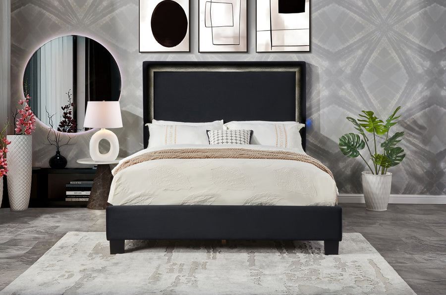 - LED lighting is operated by a simple one-touch button on each side of the headboard