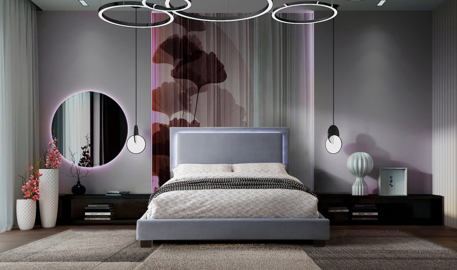 If you need a little extra glow in your life, the ambient lighting of the Lumina Collection is just what the doctor ordered. Clean lines and a minimalist silhouette ensure this stylish Queen Bed keeps your bedroom from feeling fussy or cluttered, which is productive for good sleep hygiene. Fully upholstered in grey flannelette with a subtle texture, the neutral palette is a fantastic blank slate whether you want to incorporate existing furniture or décor or if you want to start designing a brand new room. And when you want extra illumination, the headboard’s LED lighting turns on easily at a touch of the buttons built right into each of the headboard’s sides. A convenient platform design allows you to dispense with a box-spring or foundation and rest your mattress directly on the slats at the correct height. It’s never been easier to brighten your day – or your night – thanks to the Lumina.