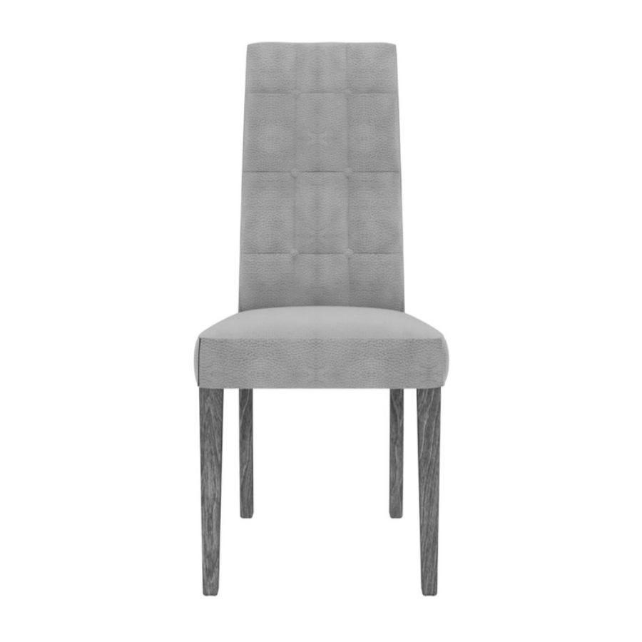 Pamper yourself at every meal with the Sarah Collection. Crafted in Italy with utmost care, this splendid side chair is upholstered in wonderfully soft grey microfiber fabric with button-topped biscuit tufting. Graced with a contemporary high back, the solid frame features legs with a gorgeous grey faux birch finish highlighted by a state of the art high gloss acrylic lacquered coating that not only protects your chair frame but also presents a truly exquisite look and feel. With the Sarah's merging of comfort and style, your guests will be dazzled as they dine.