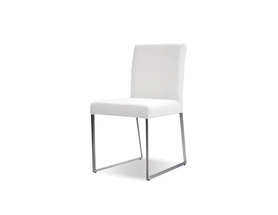 Quite possibly one of our most comfortable and popular collections is the TATE series. This is a seat that couples can easily agree on when it comes to both style and comfort. The brushed steel legs are beveled to add extra visual interest and it is upholstered in a serviceable, breathable leatherette. Choose from three colours.