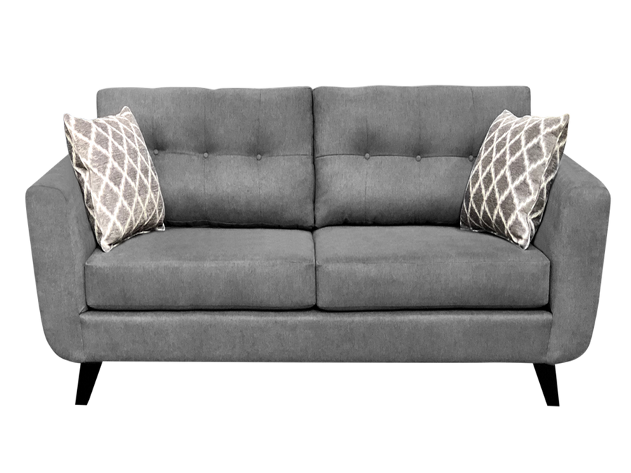 Displayed in Hugo Graphite with Toss Pillows in Chateau Silver