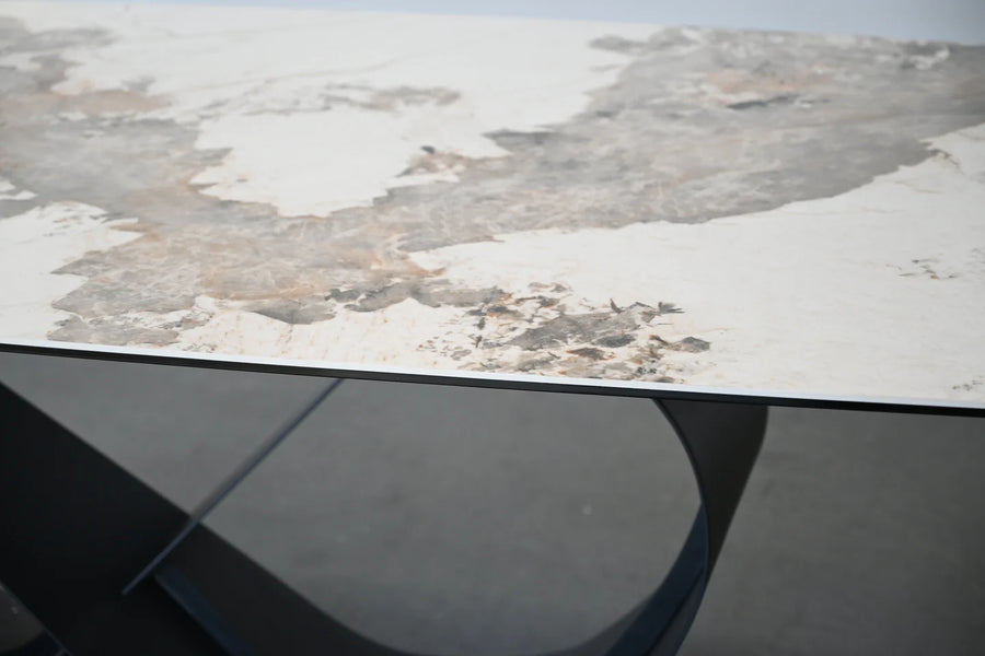 Elegance meets durability with the Wave table. Crafted with a stunning Magellano ceramic top, this table is not only visually striking but also incredibly resilient. The unique butterfly-designed base, made from solid steel, adds a touch of sophistication to any space.